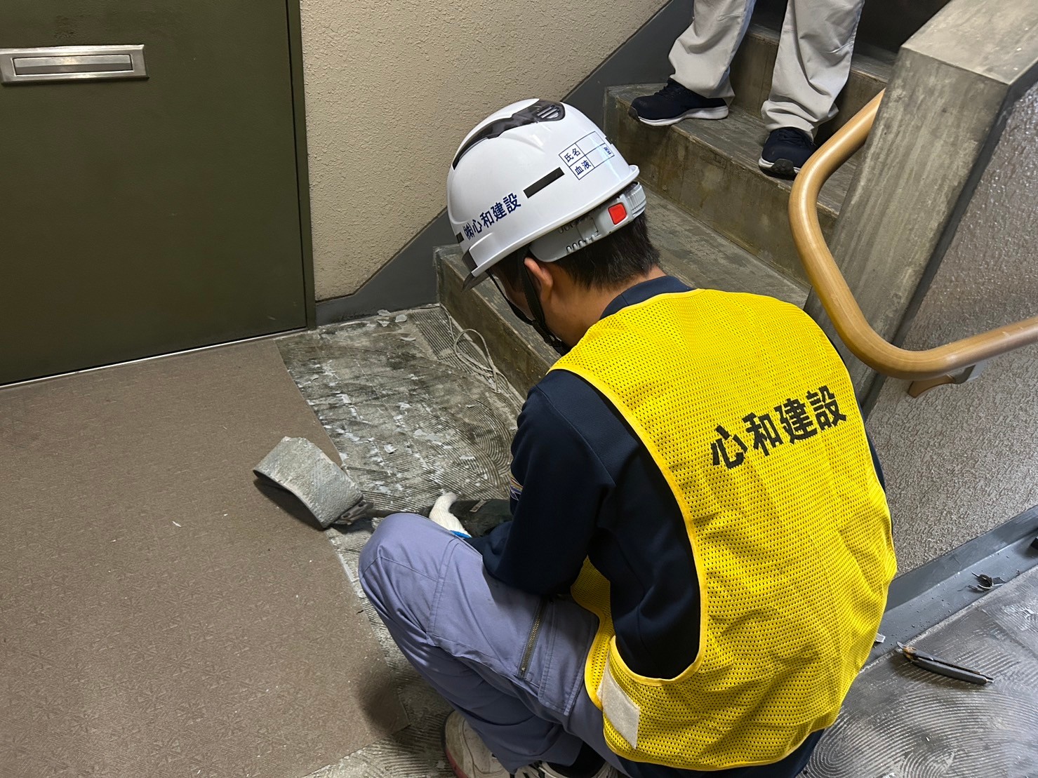 心和建設は撤去班と打ち込み班を分けて、スピーディーに完了するように手配するとともに、管理者が品質もチェックしています。